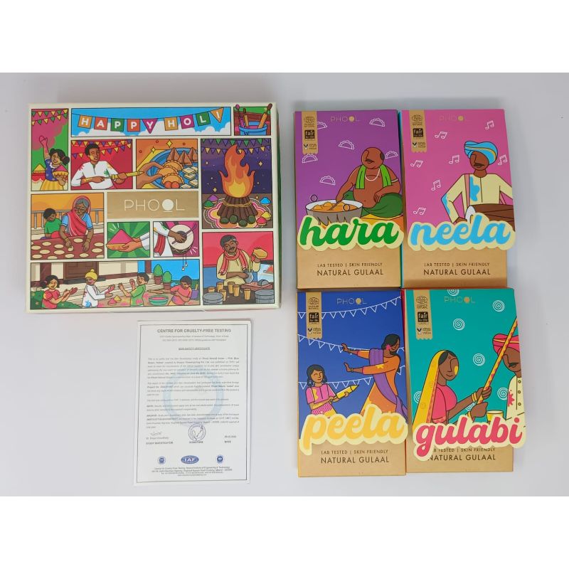 Our safe-for-skin claims are not just skin-deep. Phool Natural Gulaal is certified skin-safe by the Centre For Cruelty-Free Testing. This certification ensures that our gulaal is non-corrosive and skin-friendly, making it perfectly safe for Holi.