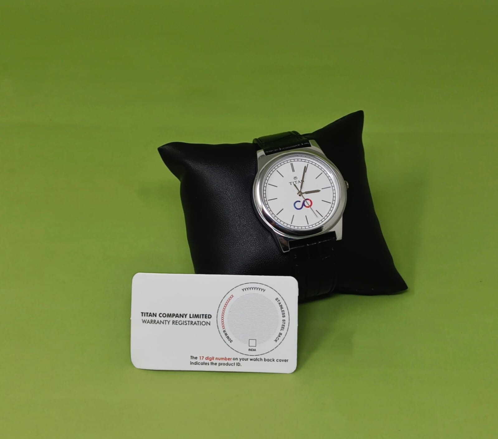 A premium gifting set featuring a personalised card, customised Tanishq silver coin, logo-shaped lapel pin, two Titan branded watches with logo branding, a sturdy tote bag, and a sleek gift box—perfect for memorable corporate gifting.