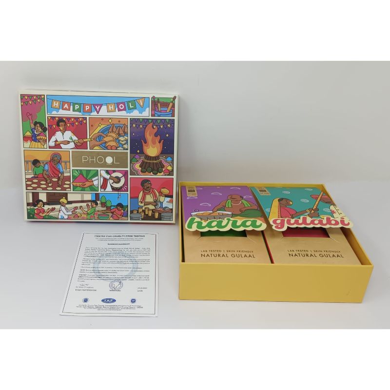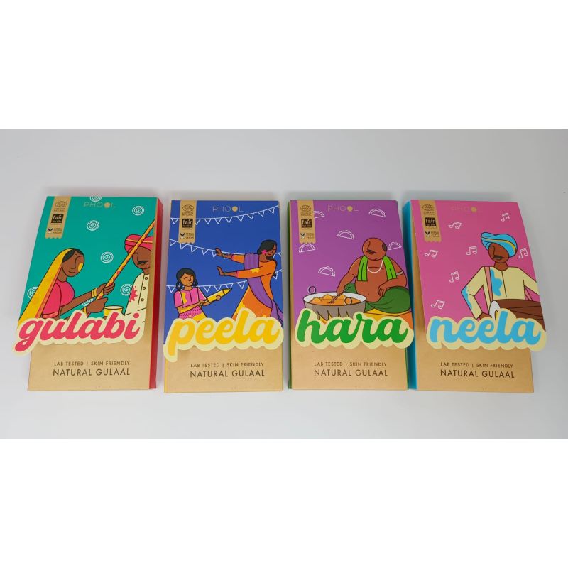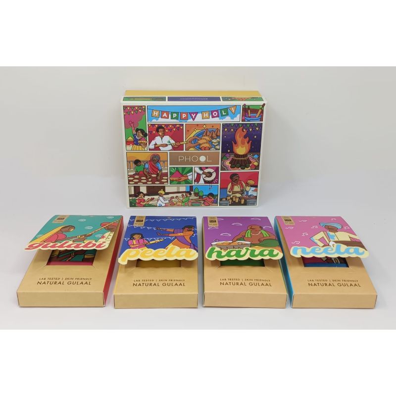 Natural Gulaal is made the traditional way; with natural ingredients and heaps of love. Have a wholesome Holi with colours infused with fragrant natural essential oils that have been extensively tested under the highest benchmarks for skin safety. With this box, you get natural gulaal in 4 vibrant shades: Bright Yellow, Natural Green, Calming Blue & Vibrant Pink.